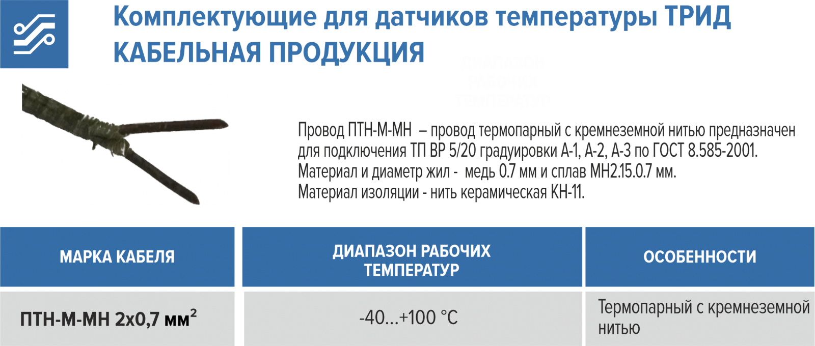 Дополнительно вы можете приобрести провод термоэлектродный компенсационный ПТН-М-МН 2х0,7